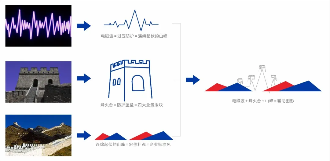 輔助圖形以長(zhǎng)城為主元素+電磁波形+山峰組合而成,形成一套完善的防御系統(tǒng),堅(jiān)不可摧的長(zhǎng)城完美詮釋檳城電子的過(guò)壓防護(hù)理念和愿景,為檳城電子的產(chǎn)品代言。