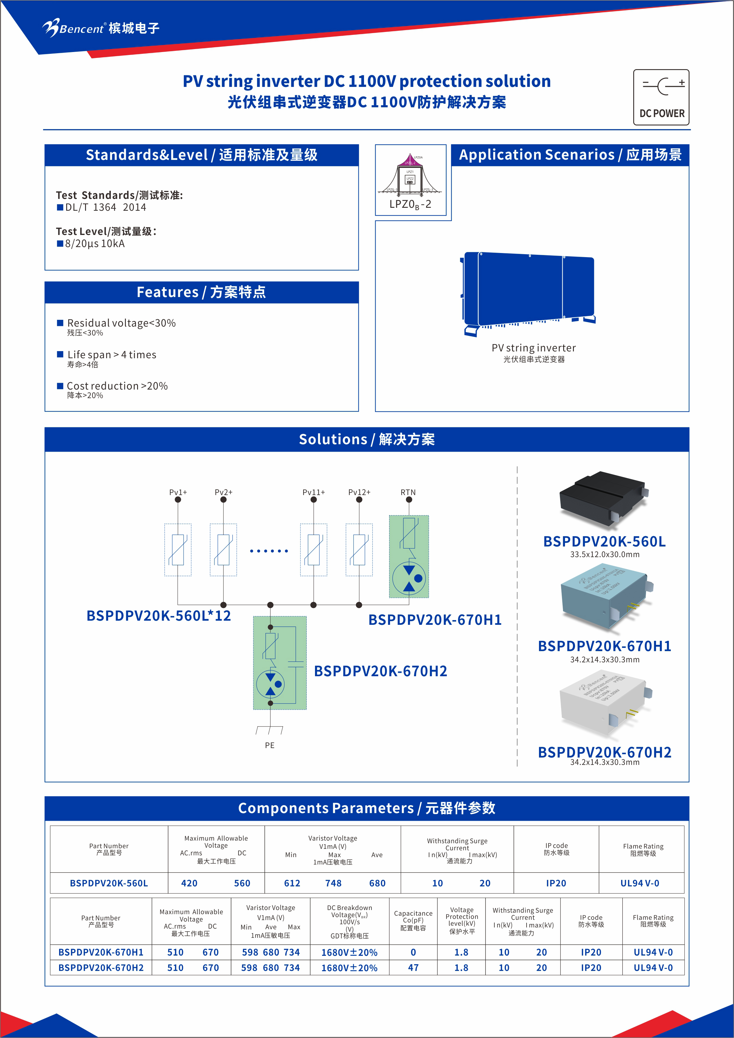 ? 光伏用DC接口解決方案BSPDPV20K系列——在降低成本的同時(shí)有效解決MOV的直流老化問題