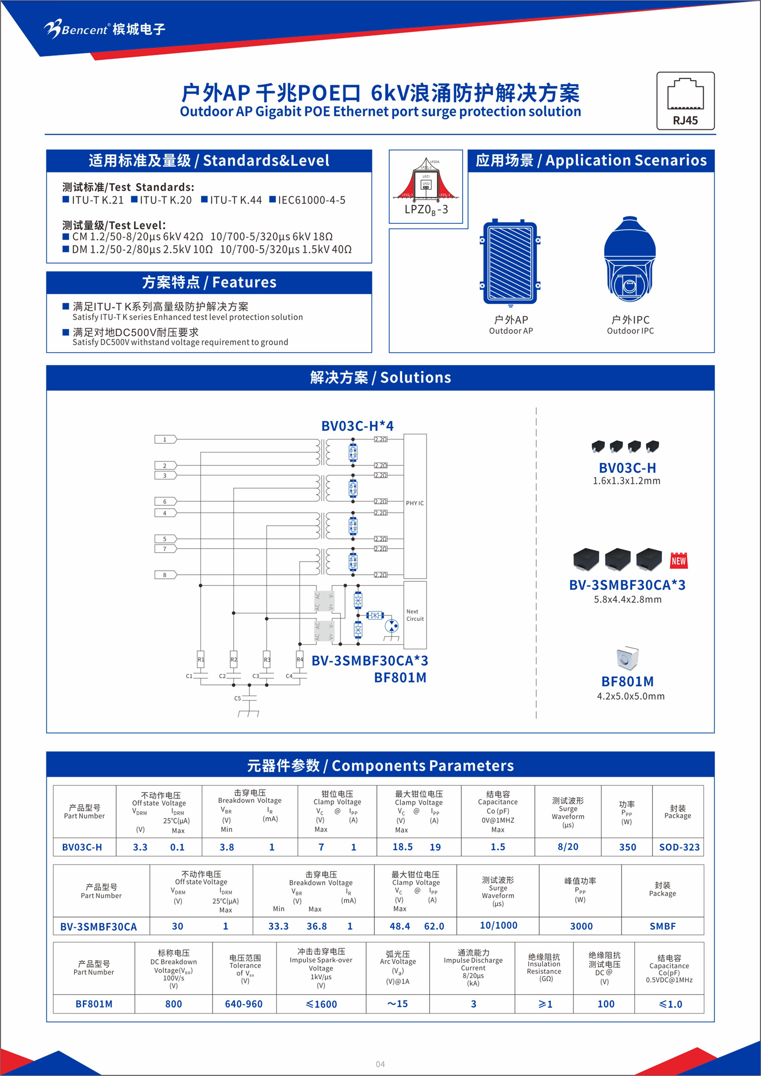 針對網(wǎng)口的浪涌防護(hù),我們帶來了SMBF系列產(chǎn)品,實現(xiàn)小體積,大通流的需求: